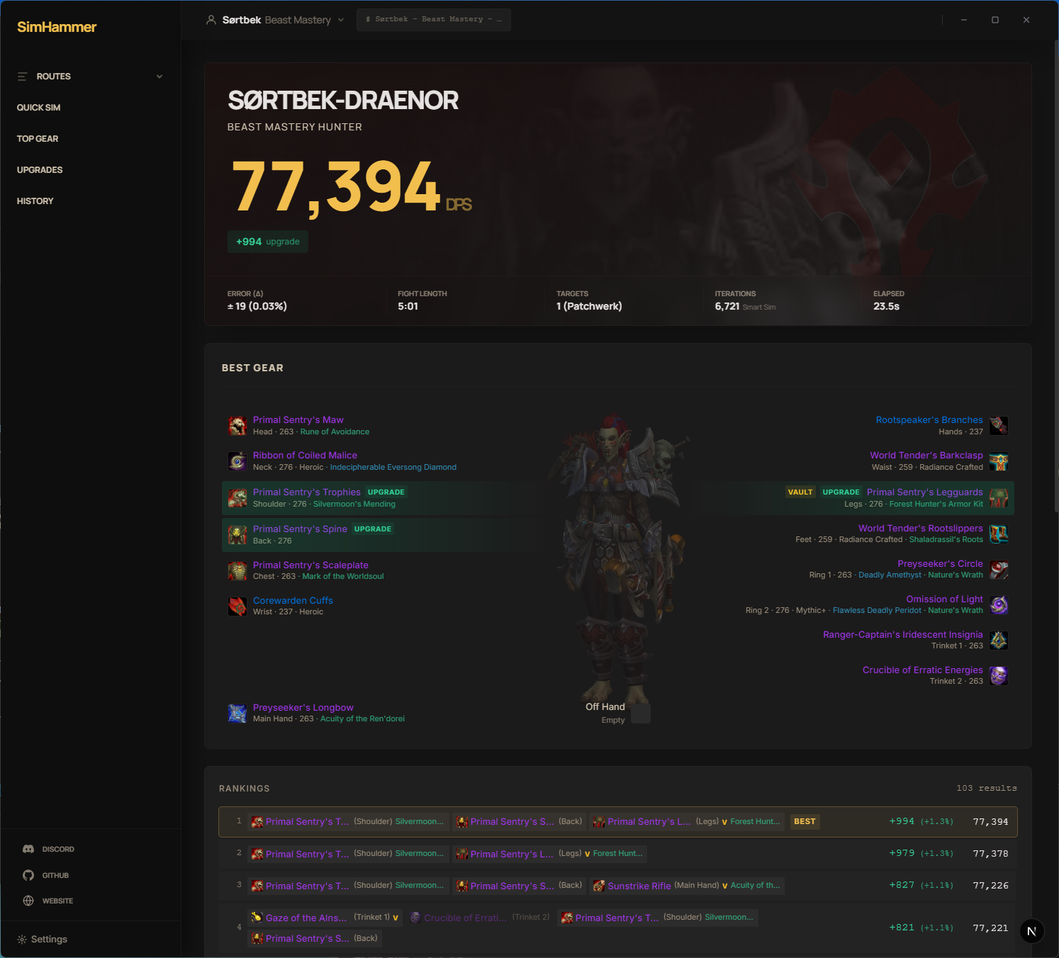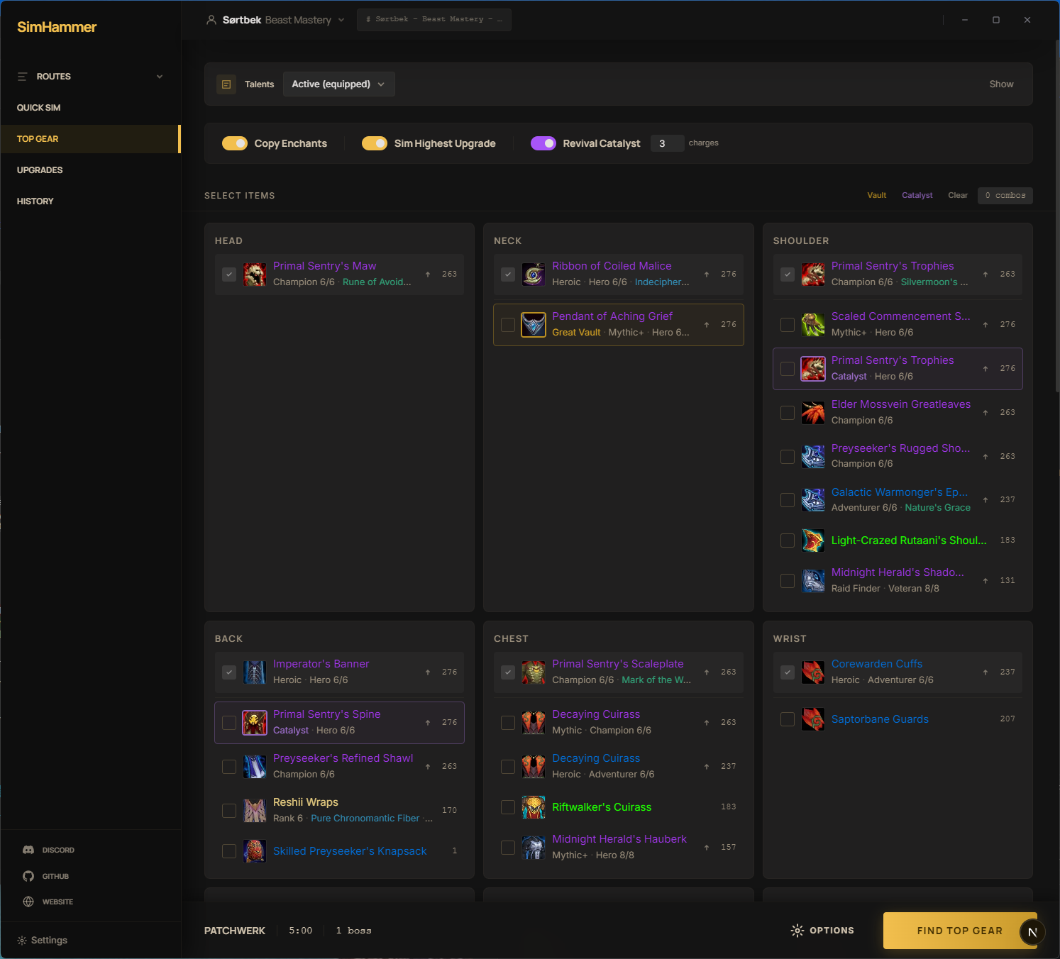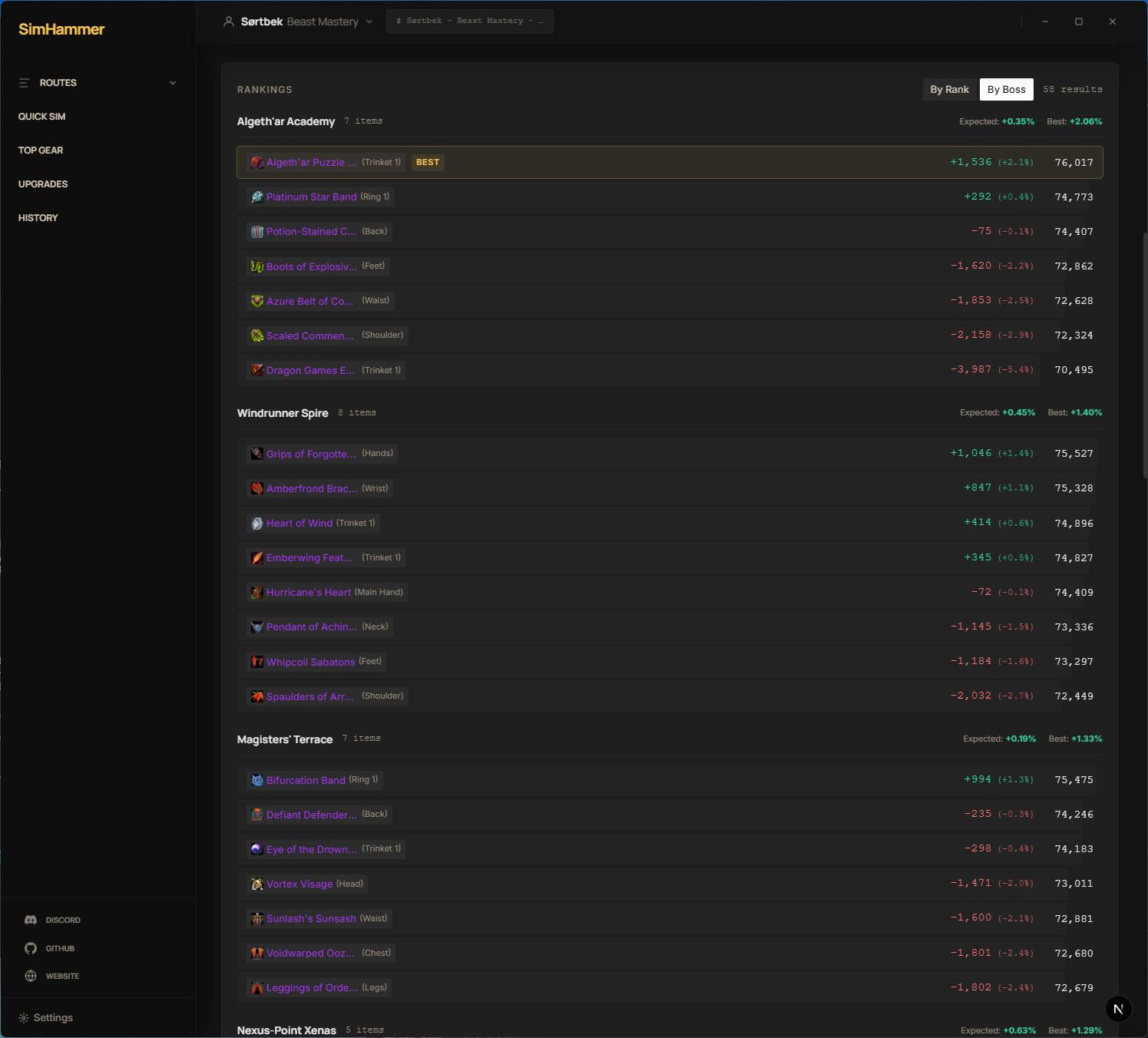 Pick an item and see how it stacks up. SimHammer shows you the DPS impact so you know exactly what to chase.